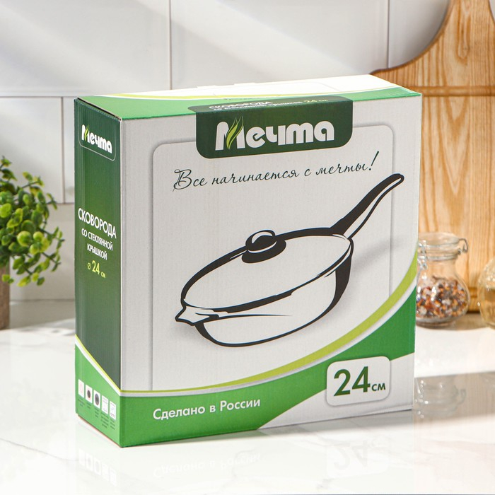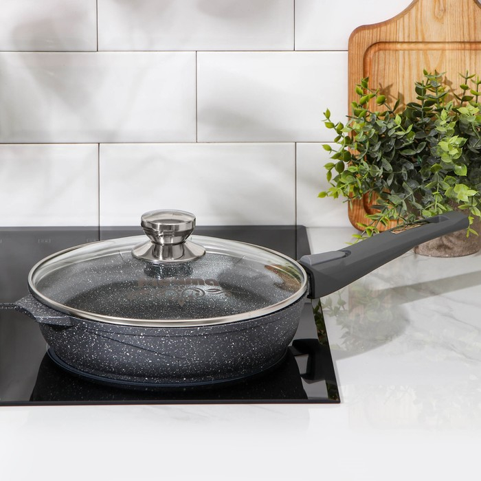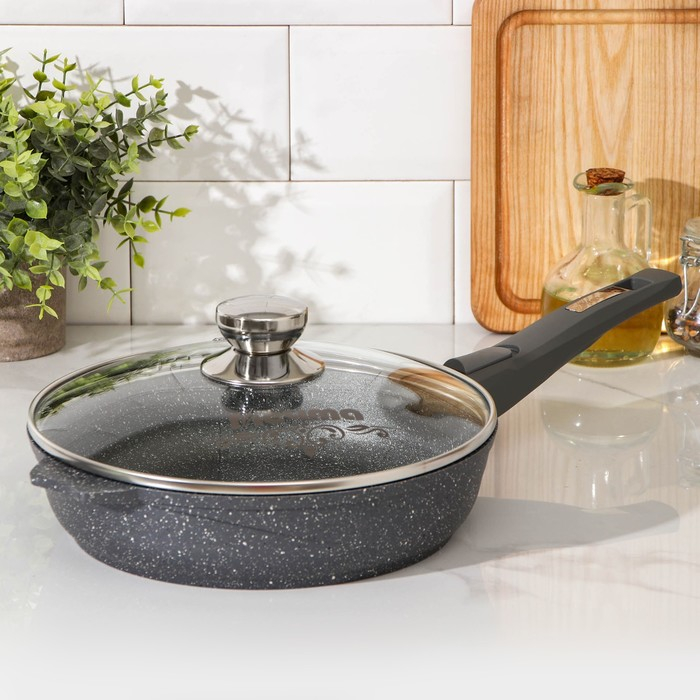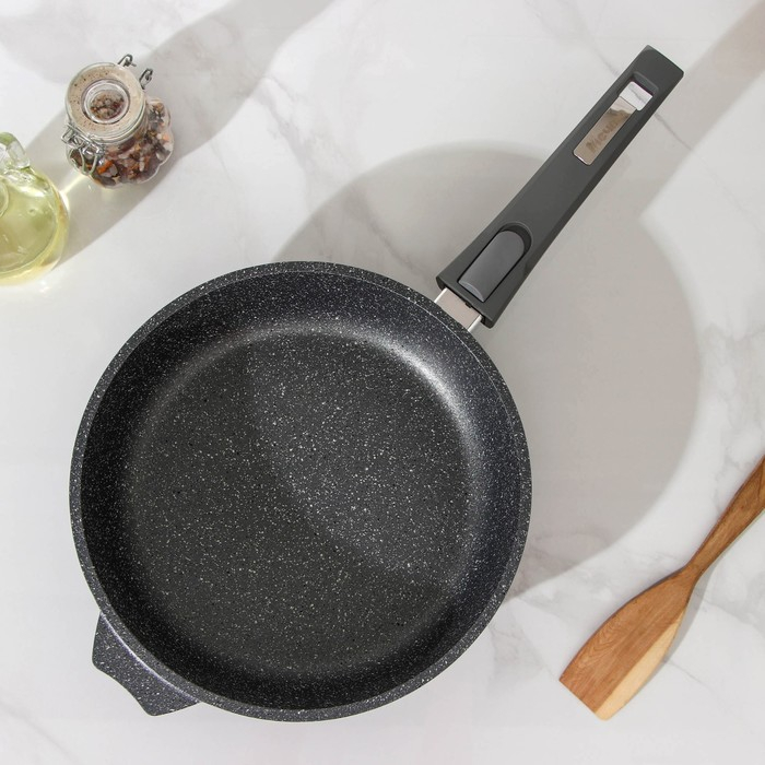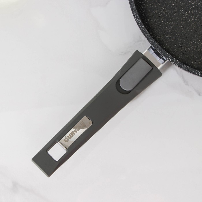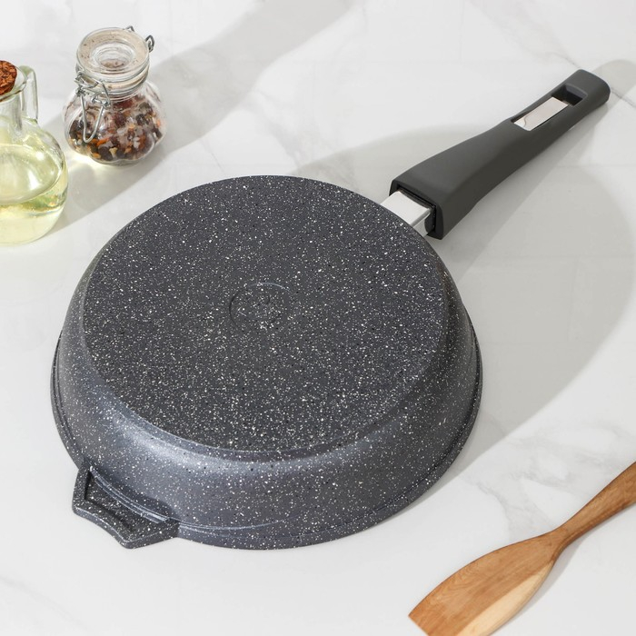 Сковорода «Гранит», d=24 см, съёмная ручка, антипригарное покрытие, стеклянная крышка, цвет серый