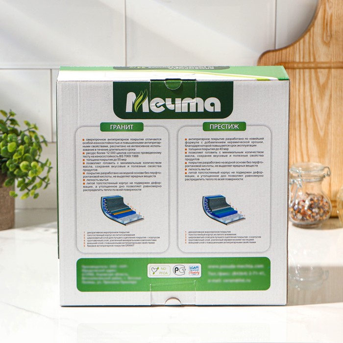 Сковороды серии Granite выполнены из прочного литого алюминия. Посуде не страшна деформация под воздействием высокой температуры, изделие прочное и лёгкое.