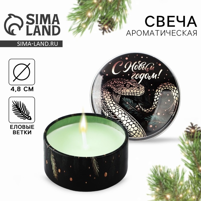 Свеча новогодняя в железной банке «Новый год: Новогодняя«Новый год: аромат еловые ветки, 4.8 см