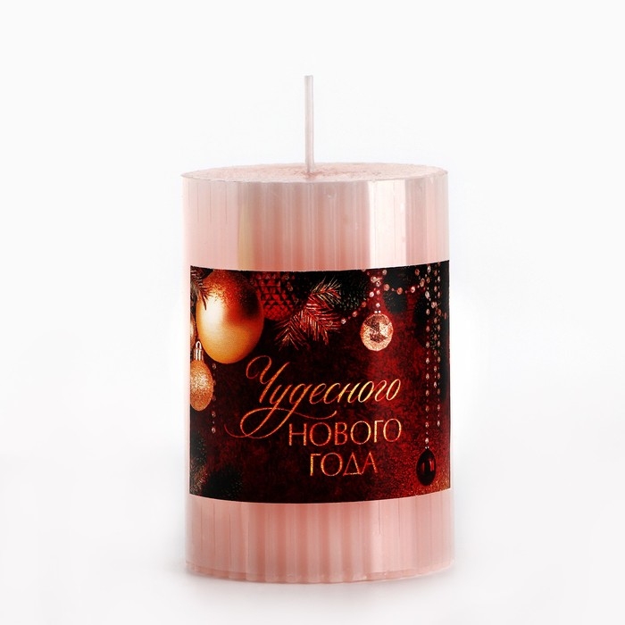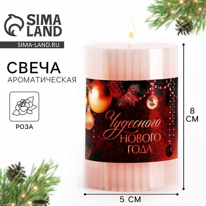 Свеча новогодняя столбик интерьерная «Новый год: Чудесного нового года», аромат роза, 7,5 х 5 см