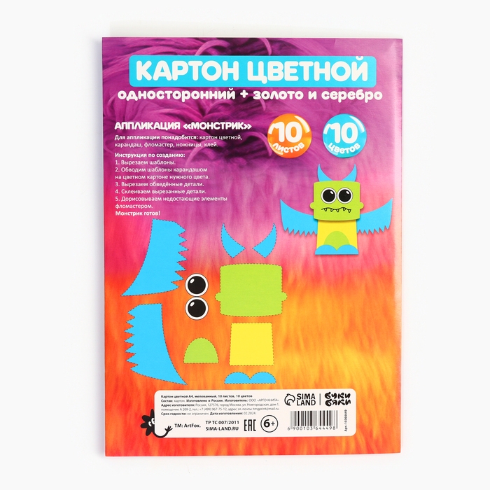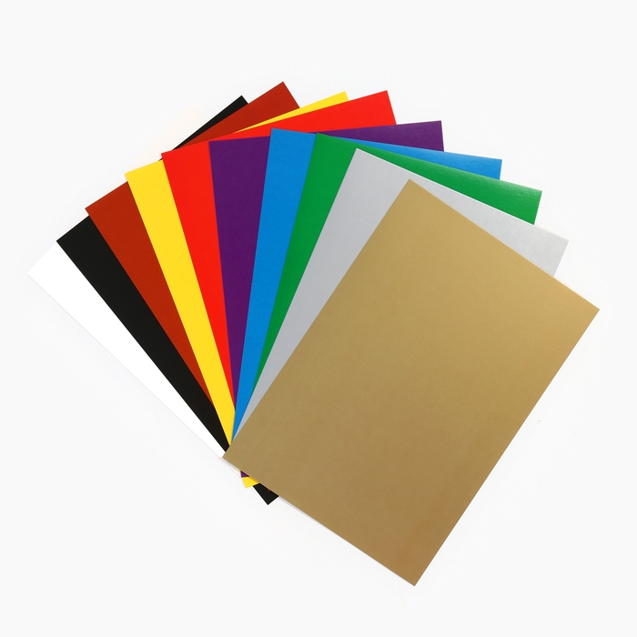 Картон цветной А4 мелованный 10л 10 цв 220г односторонний (золото и серебро) Буки Бяки