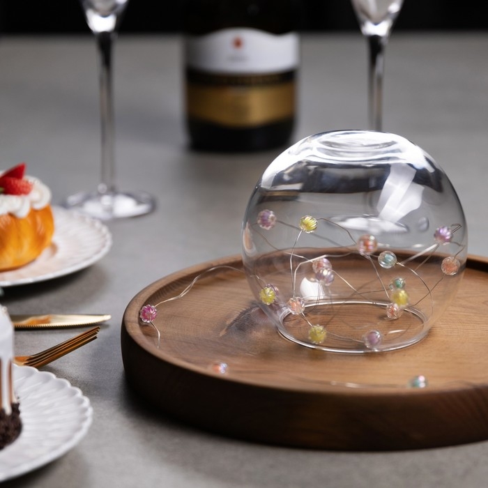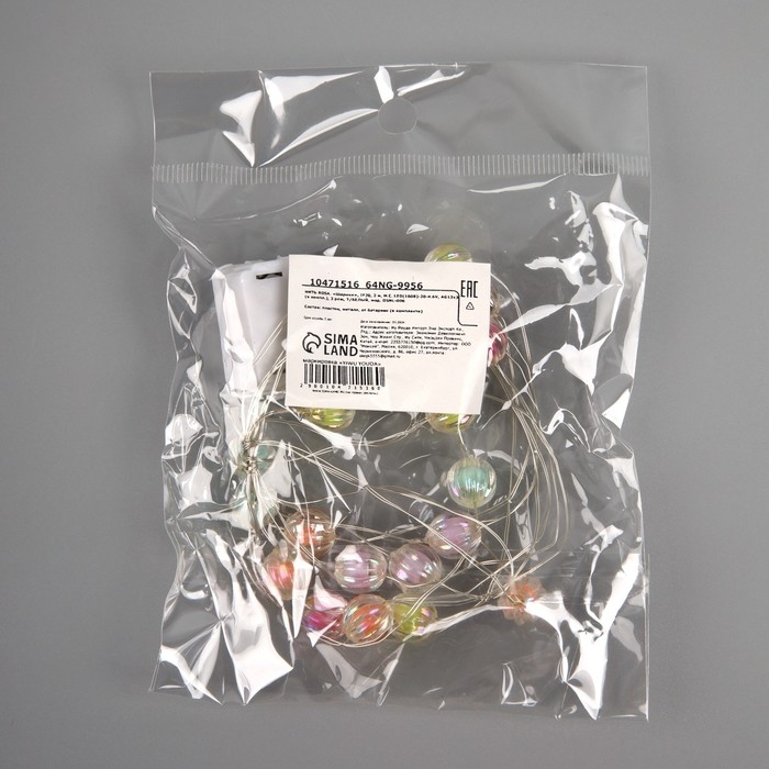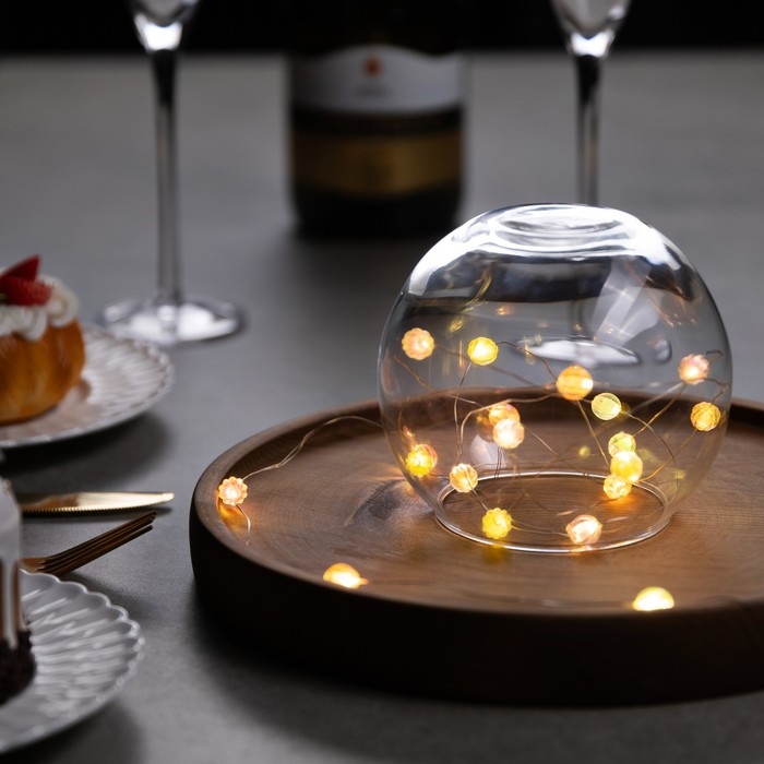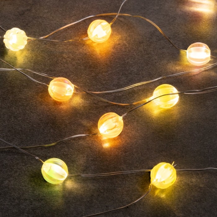 Гирлянда «Нить» 2 м роса с насадками «Шарики», IP20, нить серебристая, 20 LED 4.6 В, батарейки AG13x3 (в комплекте), 3 режима, свечение тёплое белое