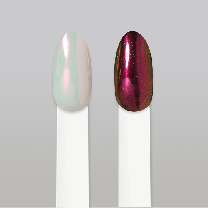 - Эффект зеркального блеска придаёт ногтям уникальный хромированный цвет, который идеально отражает свет.