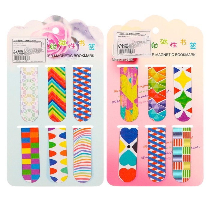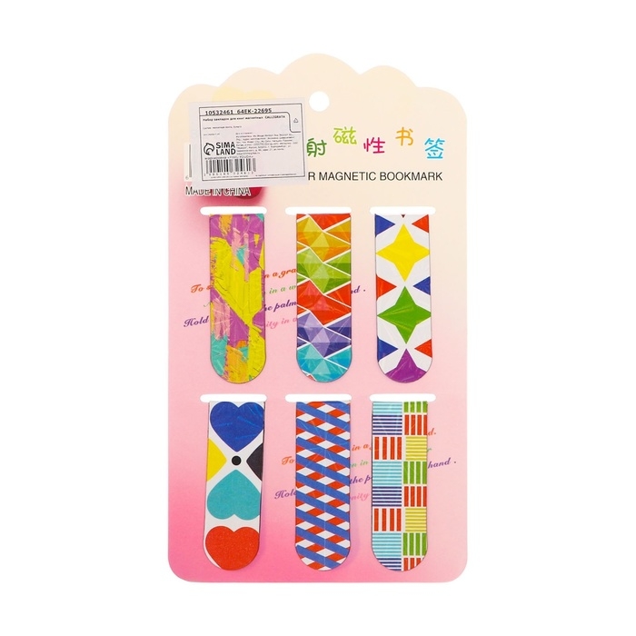 Набор закладок магнитных для книг 6 штук Абстракция 60*19мм МИКС CALLIGRATA