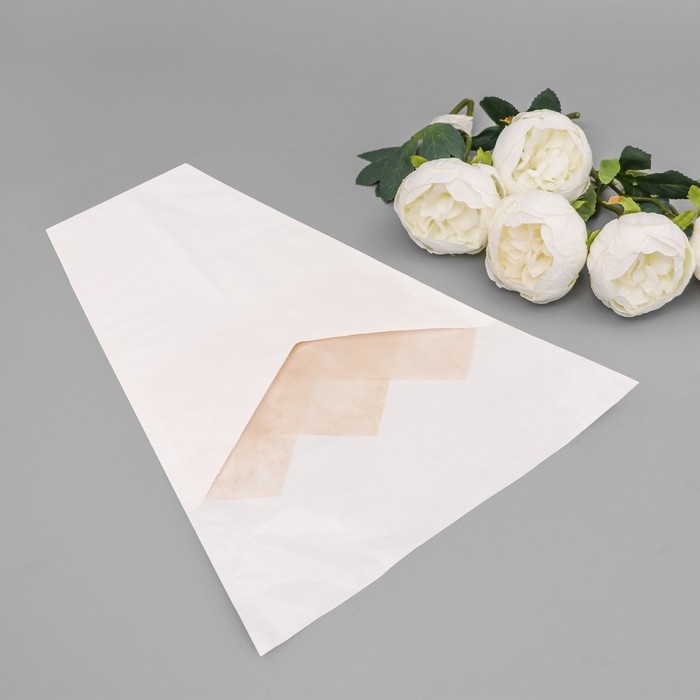 Пакет конус для цветов, крафт+ пленка, 30+11х42см±1см, белая