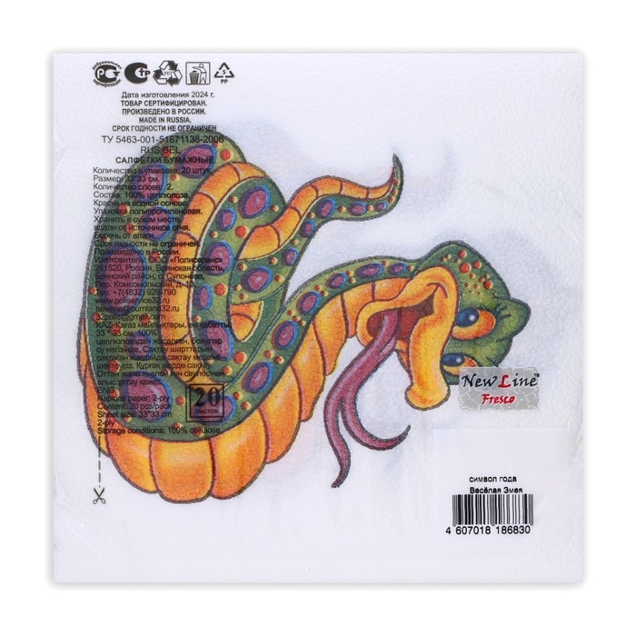 Новогодние салфетки бумажные New Line Fresco «Весёлая змея» 2 слоя, 33х33 см, 20 шт