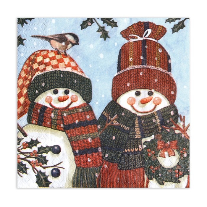 Новогодние салфетки бумажные New Line Fresco «Снеговички» 2 слоя, 33х33 см, 20 шт