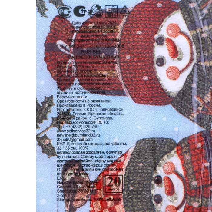 Новогодние сервировочные бумажные салфетки - это отличное украшение для вашего праздничного новогоднего стола. Идеально подойдут как для сервировки, так и в качестве декора и украшения как в домашних условиях, так и на больших праздничных мероприятиях. Салфетки с уникальным рисунком будут хорошим подарком для родных и близких. Данные салфетки можно использовать так же для декупажа и коллажей.