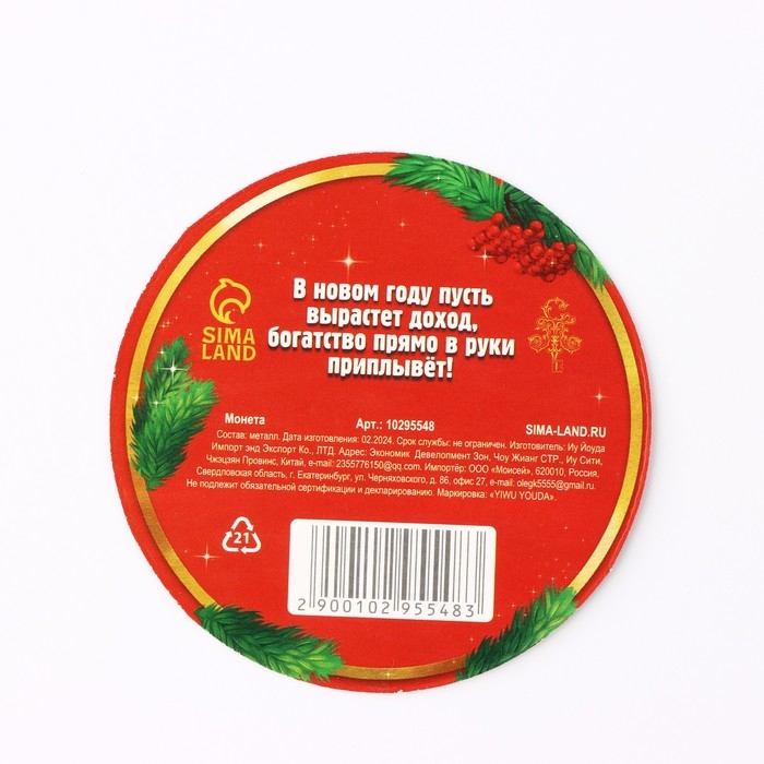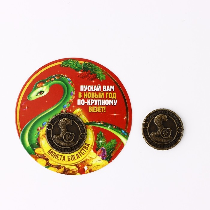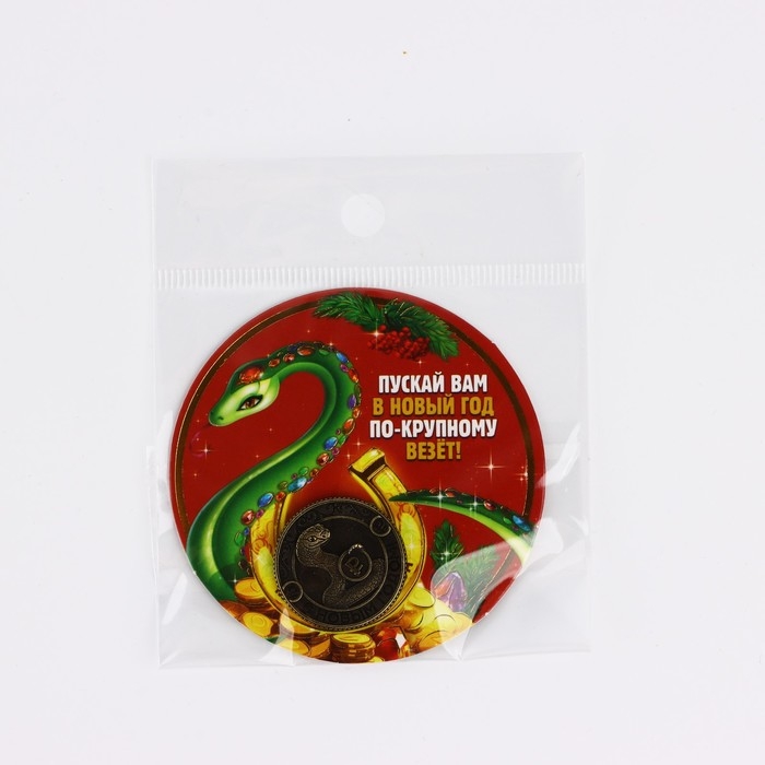 Монета новогодняя амулет «Новый год: Везёт по-крупному», диам 2.5 см