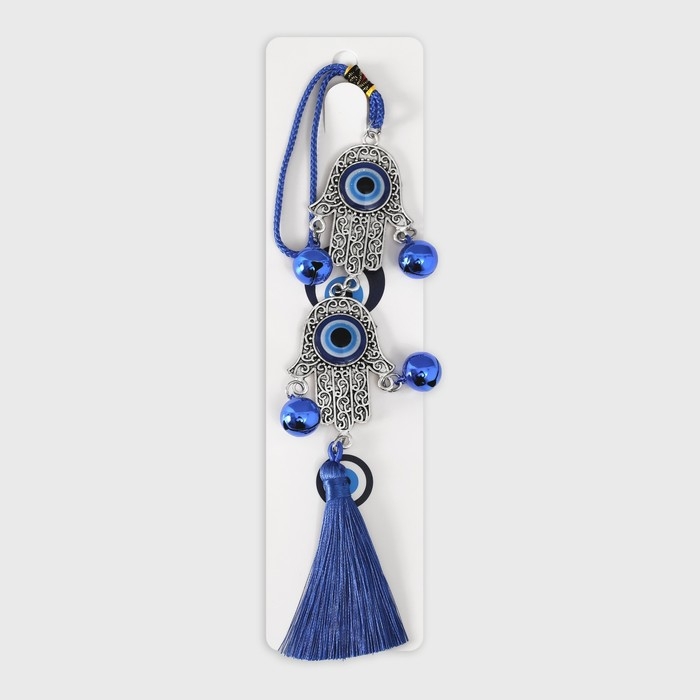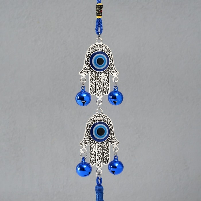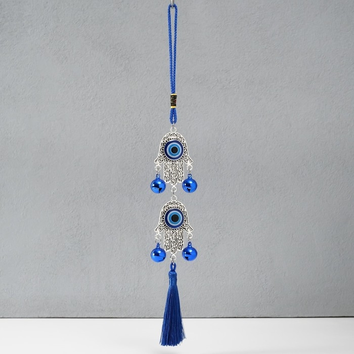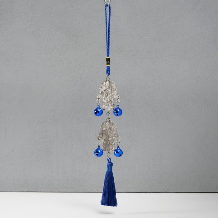 Подвеска от сглаза металл "Руки Фатимы с колокольчиками и кисточкой" 4х33 см
