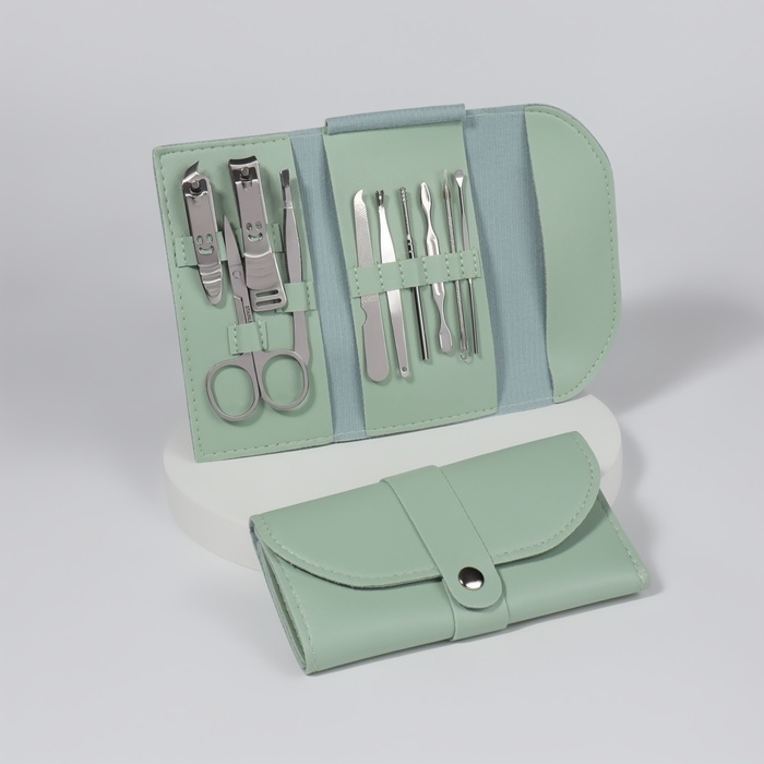 Набор маникюрный «Люси», 10 предметов, кожзам-чехол, цвет ментоловый