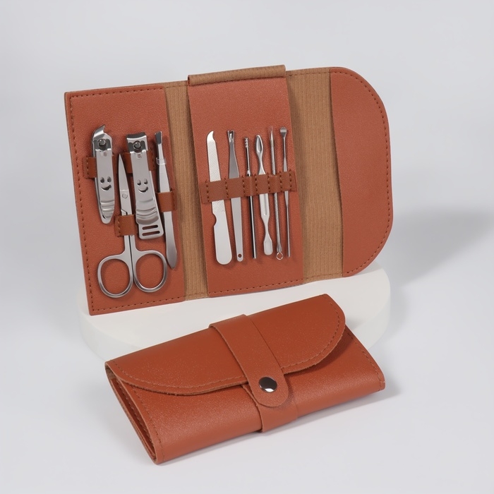 Набор маникюрный «Люси», 10 предметов, кожзам-чехол, цвет коричневый