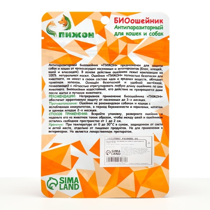 Позаботьтесь о своем питомце с биоошейником от «Пижон» — идеальным аксессуаром для защиты от блох и клещей. Этот ошейник сочетает в себе эффективность и безопасность благодаря использованию натуральных компонентов, таких как эфирные масла цитронеллы и лаванды, которые отпугивают паразитов, не причиняя вреда вашему любимцу.