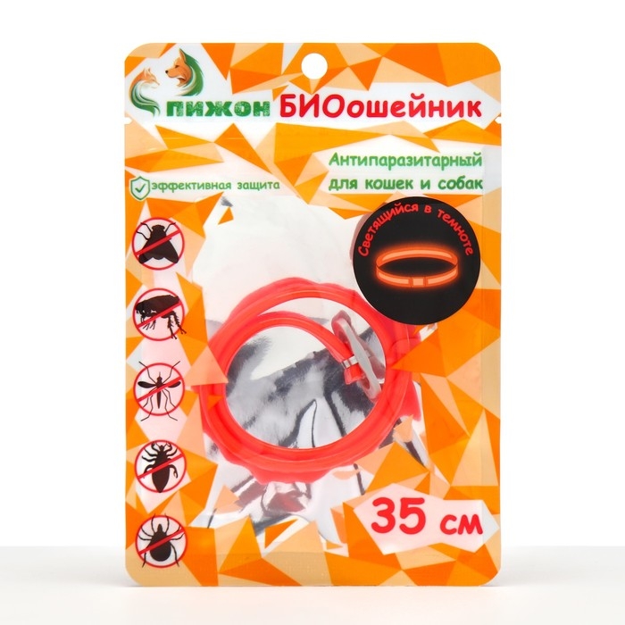Биоошейник "ПИЖОН" для животных, от блох и клещей, светящийся в темноте, красный, 35 см