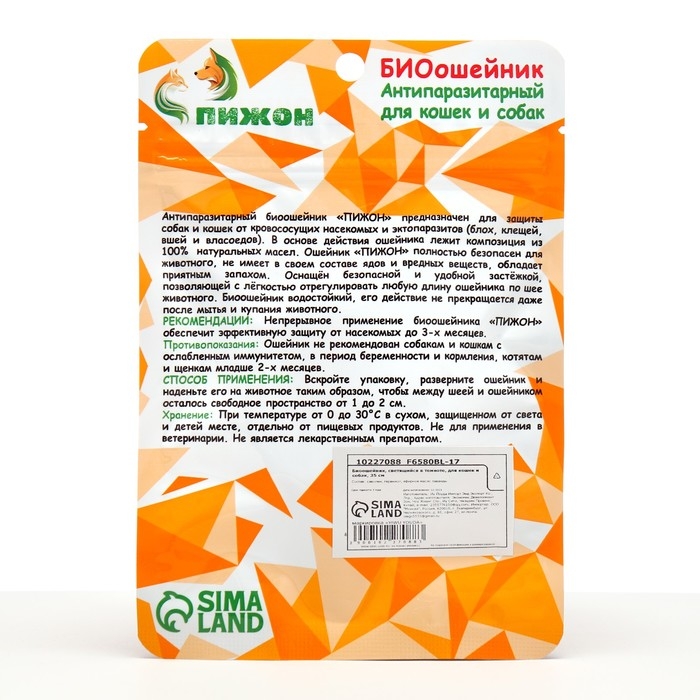 Выбирая биоошейник «Пижон», вы обеспечиваете своему питомцу не только защиту от паразитов, но и стильный аксессуар, который станет отличным дополнением к его образу. Пусть ваш любимец наслаждается безопасными прогулками и привлекает внимание даже в темное время суток!