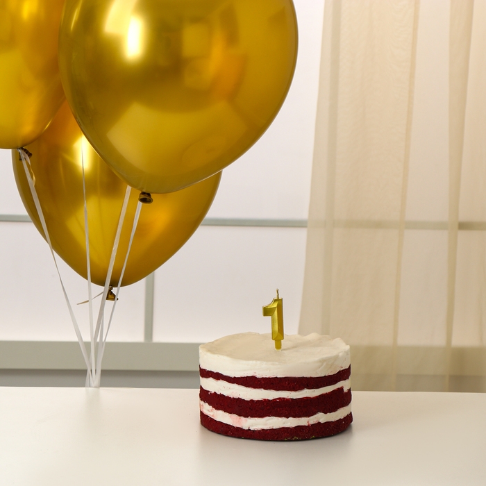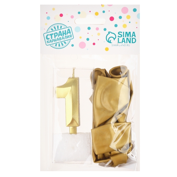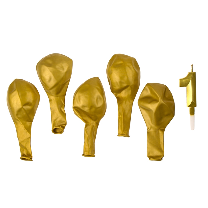 Свечи для торта + 5 шаров, цифра 1, золото