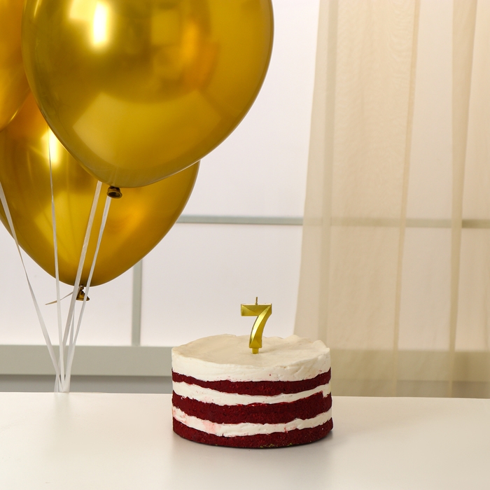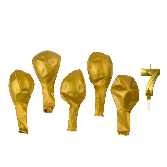 Свечи для торта + 5 шаров, цифра 7, золото