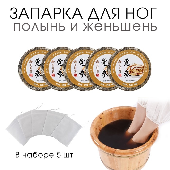 Травяной сбор для запарки ног "Полынь и женьшень", набор 5 шт