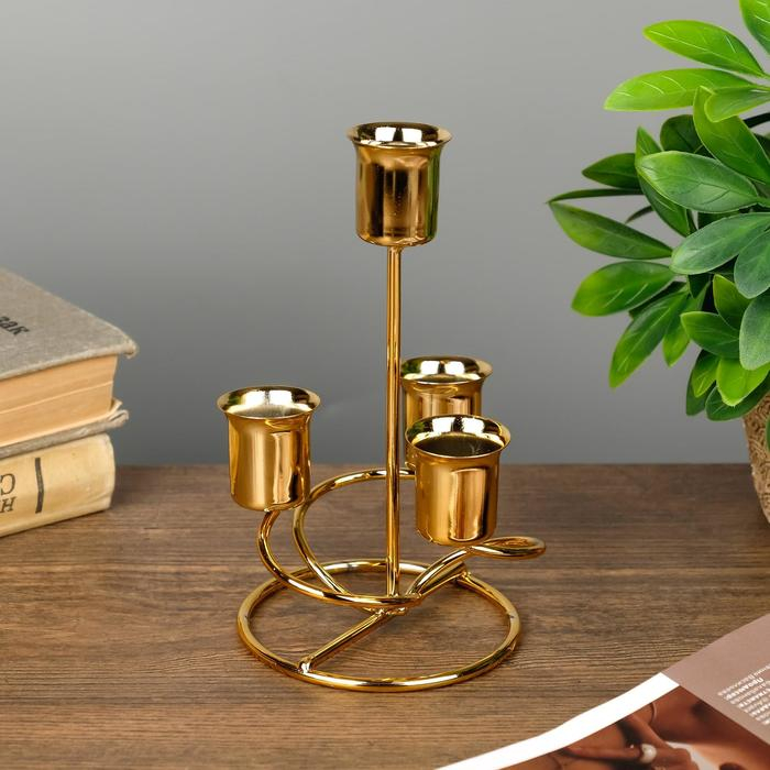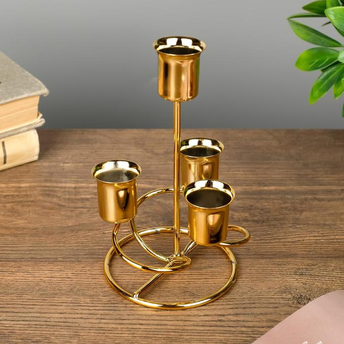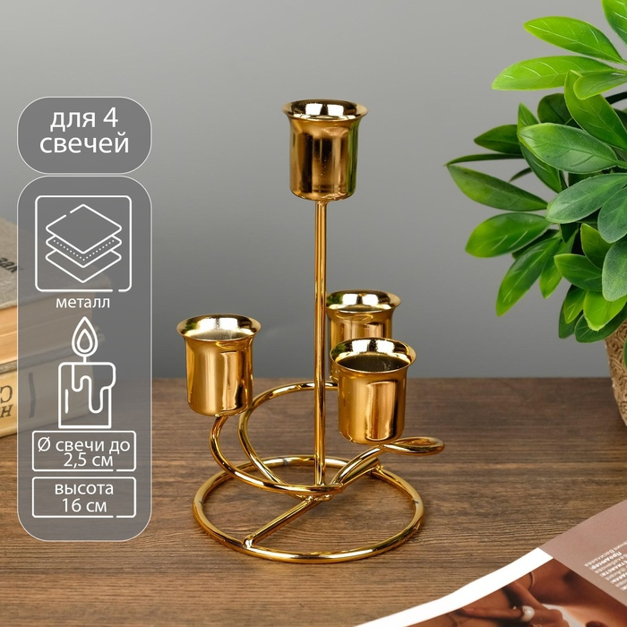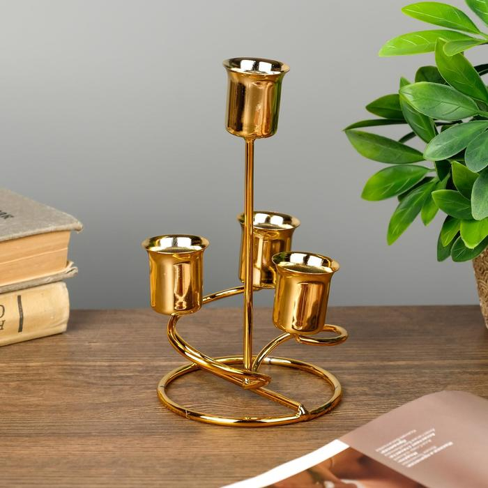 Подсвечник металл на 4 свечи "Спираль" золото 16х9х9 см