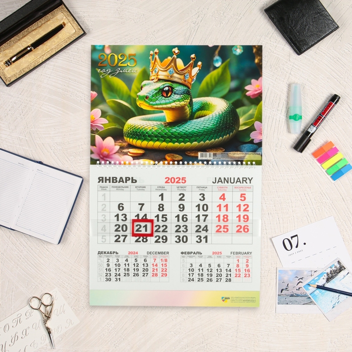 Календарь квартальный моно "Символ года - 6" 2025 год, 30 х 46 см