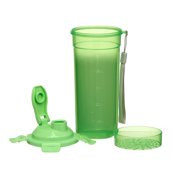 Шейкер спортивный для воды и спортивного питания, 500 мл, с ситом, 21 х 8.5 см, зеленый