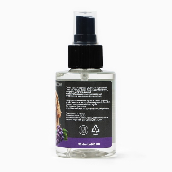 Парфюмированный спрей для животных Groomroom, аромат «Виноград», 100 мл