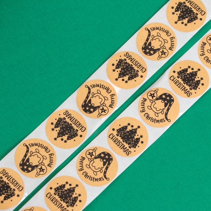 Новый год. Наклейки новогодние в рулоне "Christmas", 500 шт, 2,5 х 2,5 см.