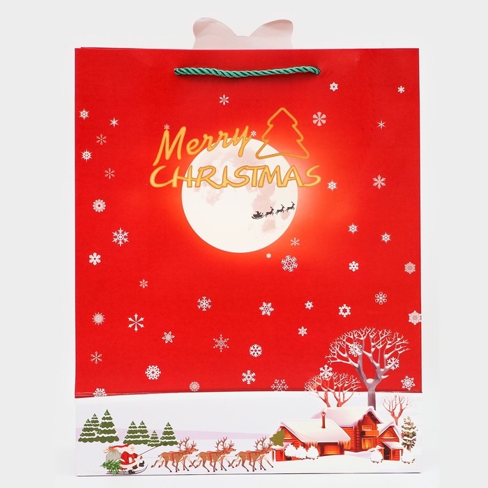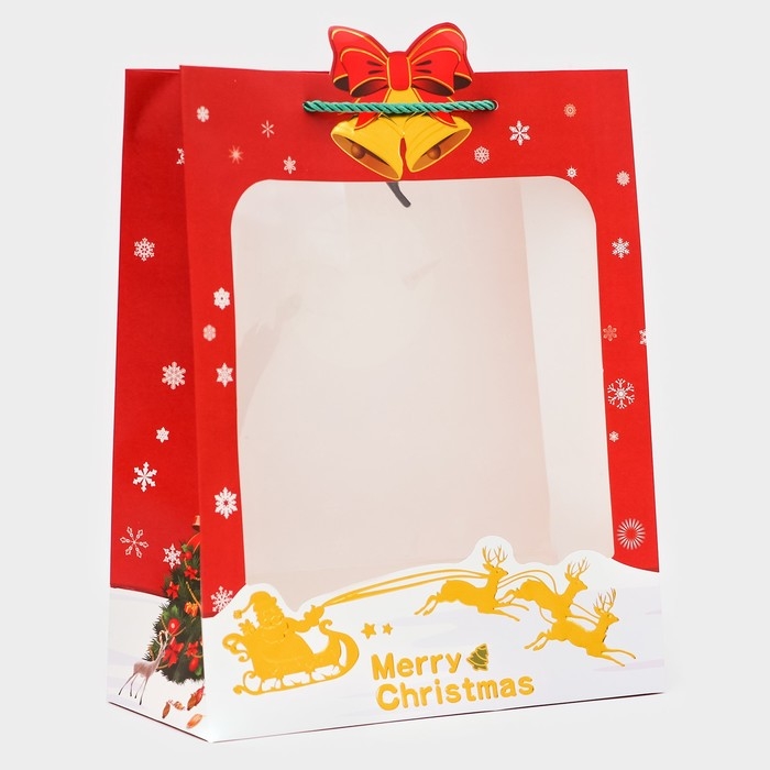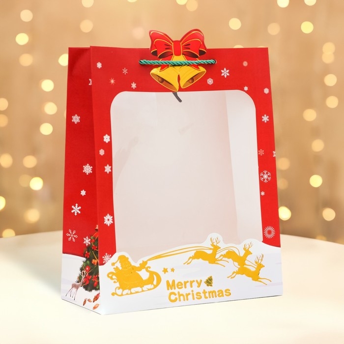 Пакет подарочный с окном новогодний имеет размеры 26 х 32 х 12 см. Он выполнен из высококачественного материала, который обеспечивает его прочность и долговечность.