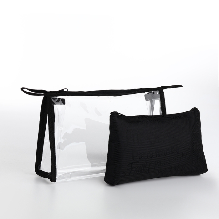 Набор косметичек 2 в 1 на молнии, цвет чёрный