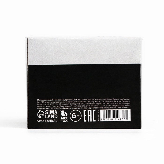 Мел для доски мягкий изготовлен из натурального природного мела, без красителей и химических добавок. Он имеет среднюю твёрдость и безопасен для детей. Мел подходит для использования на любых цветных досках школы или детского сада. Поставляется в картонной коробке по 100 штук, длина одного мелка составляет 7,5 см.