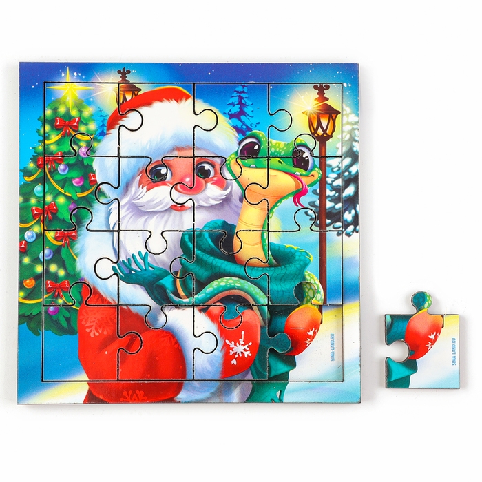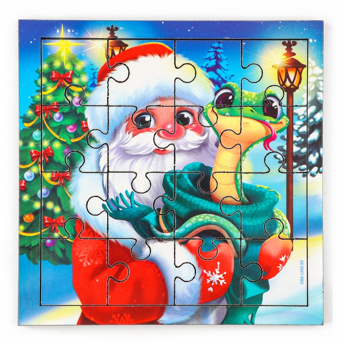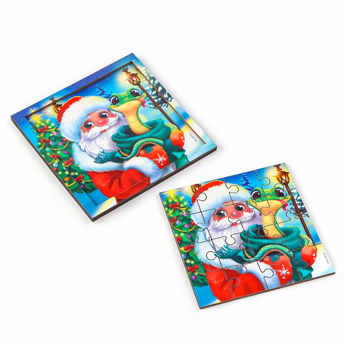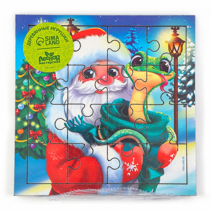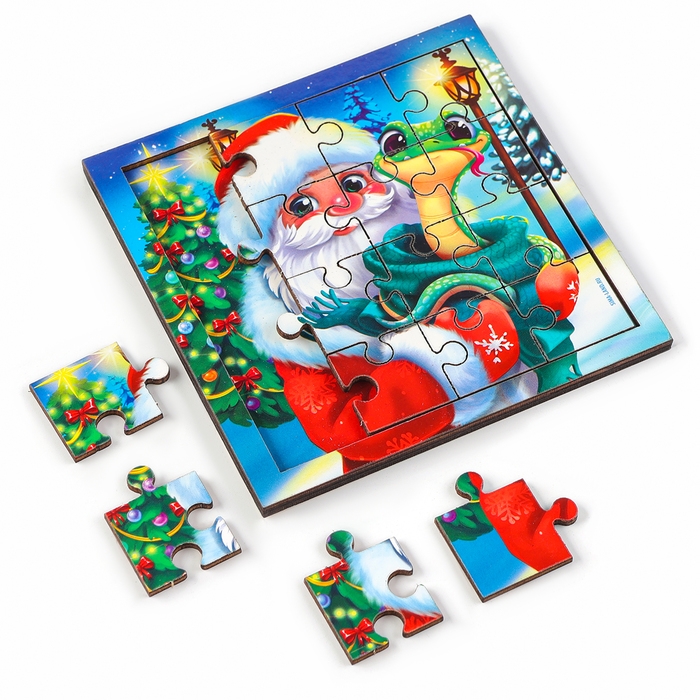 Пазлы для детей деревянные «Новый год! Дед Мороз и змея», 16 элементов, символ года 2025