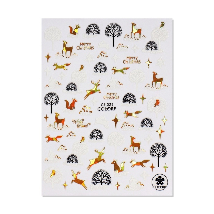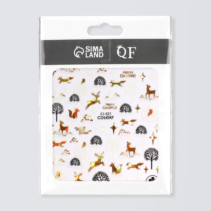 Новый год! Наклейки для ногтей «Зимний лес», фольгированные, цвет золотой/чёрный/белый