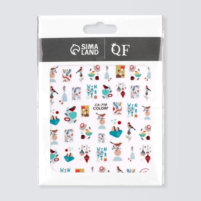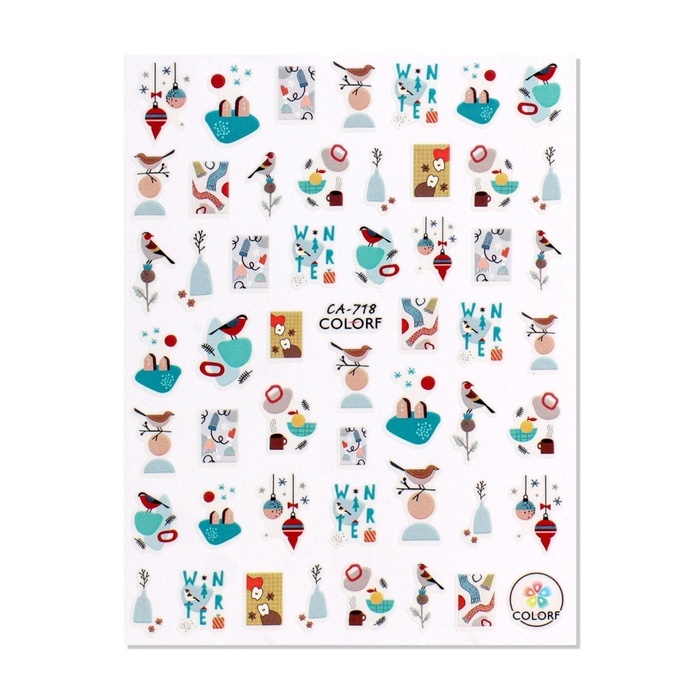 Новый год! Наклейки для ногтей «Зимние птички», разноцветные