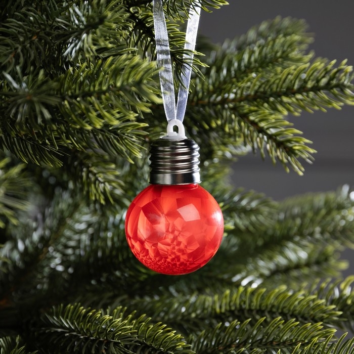 Елочный шар «Зимний узор красный» d=5 см, 1 LED, AG13x3 (в комплекте), свечение тёплое белое