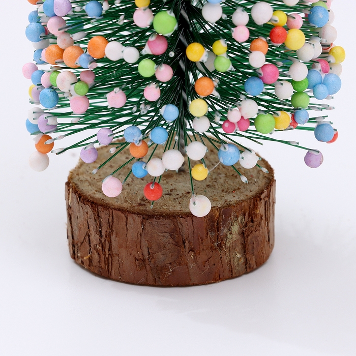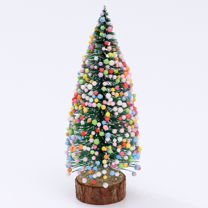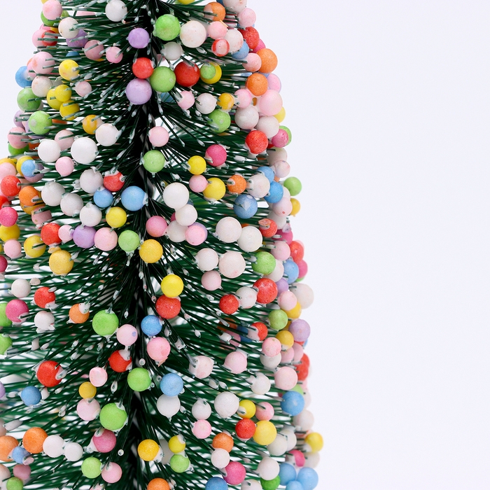 Новогодний декор «Ёлочка нарядная», украшенная пластиковыми шариками, на подставке, 7 × 7 × 15 см