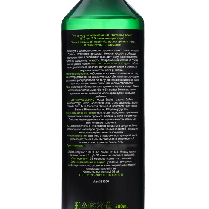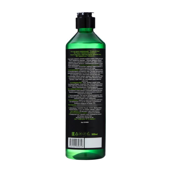Гель для душа "Сила 7 элементов природы» освежающий "Огурец & Алое", 500 мл