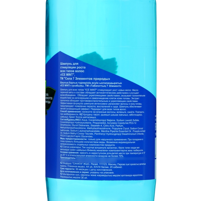 Шампунь «Сила 7 элементов природы» для стимуляции роста волос «ICE MINT» объёмом 1000 мл предназначен для всех типов волос. Он содержит масло перечной мяты, которое обладает антисептическим действием и улучшает кровообращение, а также экстракт прополиса с противовоспалительными, омолаживающими и укрепляющими свойствами.