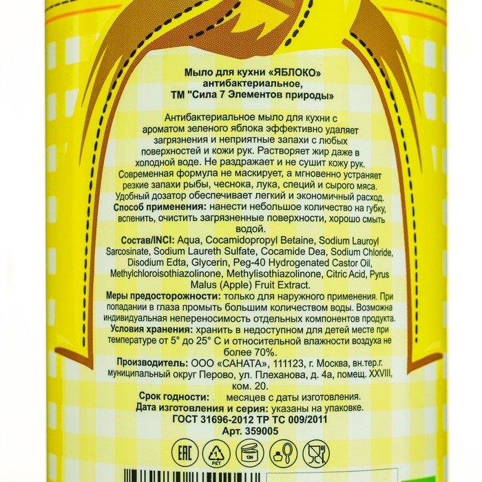 Мыло для кухни "Сила 7 Элементов природы" с ароматом яблока, 1000 мл