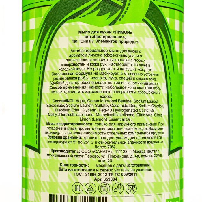 Мыло для кухни "Сила 7 Элементов природы" с ароматом лимона, 1000 мл