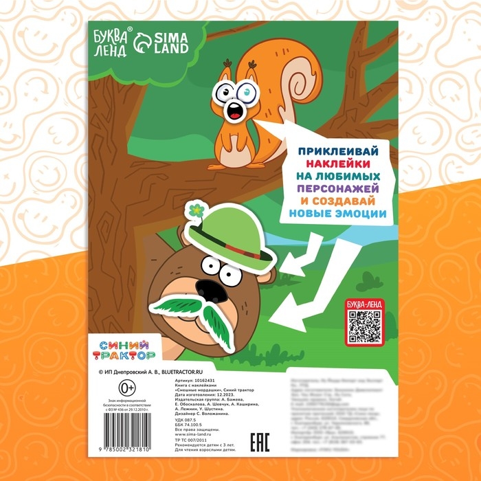 Книга с наклейками «Смешные мордашки», Синий трактор