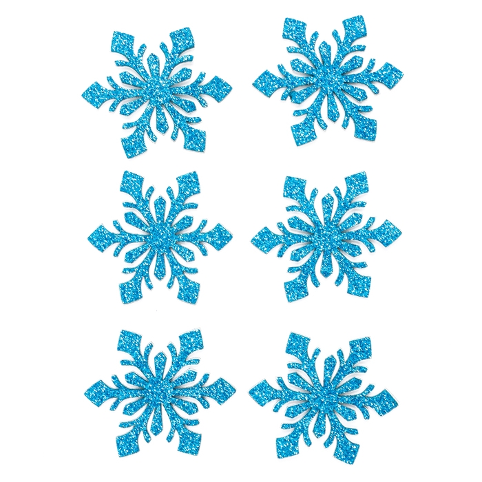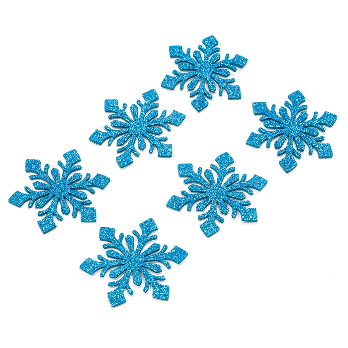 Новый год! Декор "Снежинки" на клеевой основе, набор 6 штук, цвет голубой