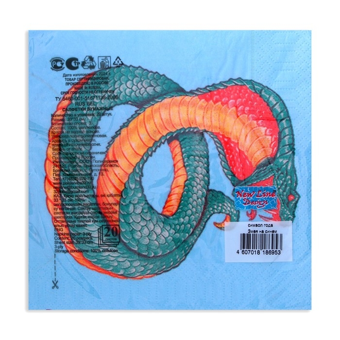 Новогодние салфетки бумажные New Line Design «Змея на синем» 3 слоя, 33х33 см, 20 шт
