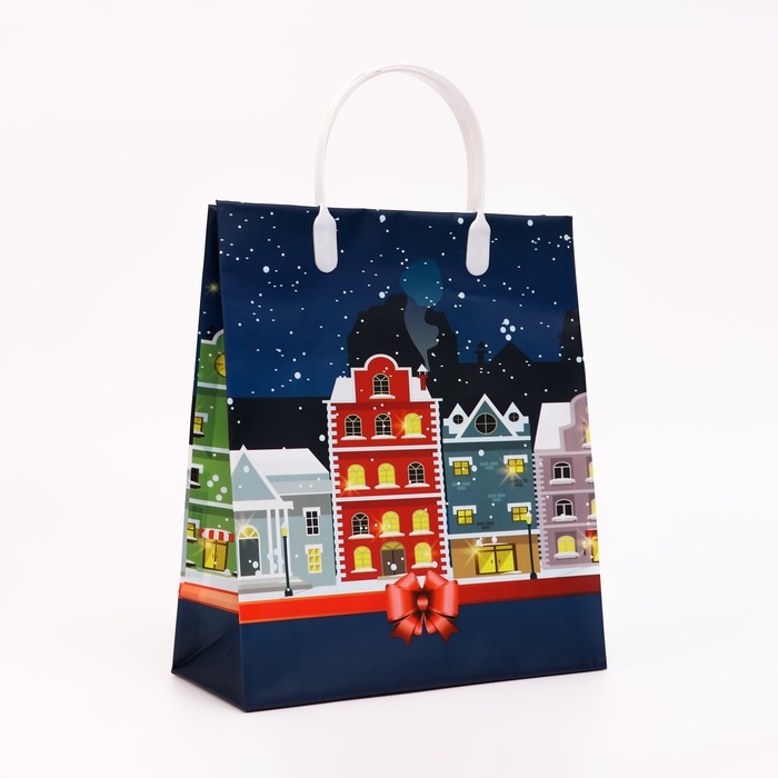 Новогодний пакет "Новогодний городок" из мягкого пластика — это идеальное решение для праздничной упаковки подарков.