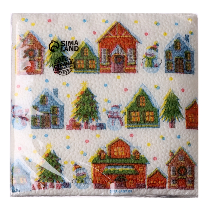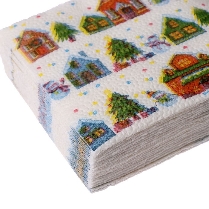Салфетки новогодние бумажные «С Новым годом: домики», однослойные, 24х24 см, 20 шт.