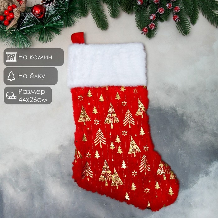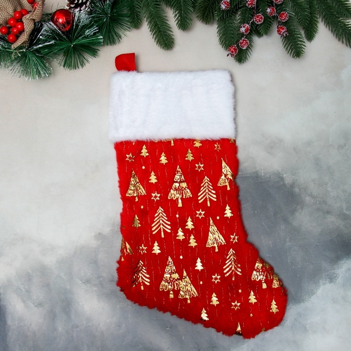 Носок для подарков "Орнамент лес" 44х26 см, красный