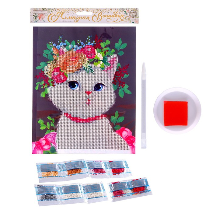 Алмазная мозаика с частичным заполнением на картонной основе «Милая кошечка», 20 х 25 см