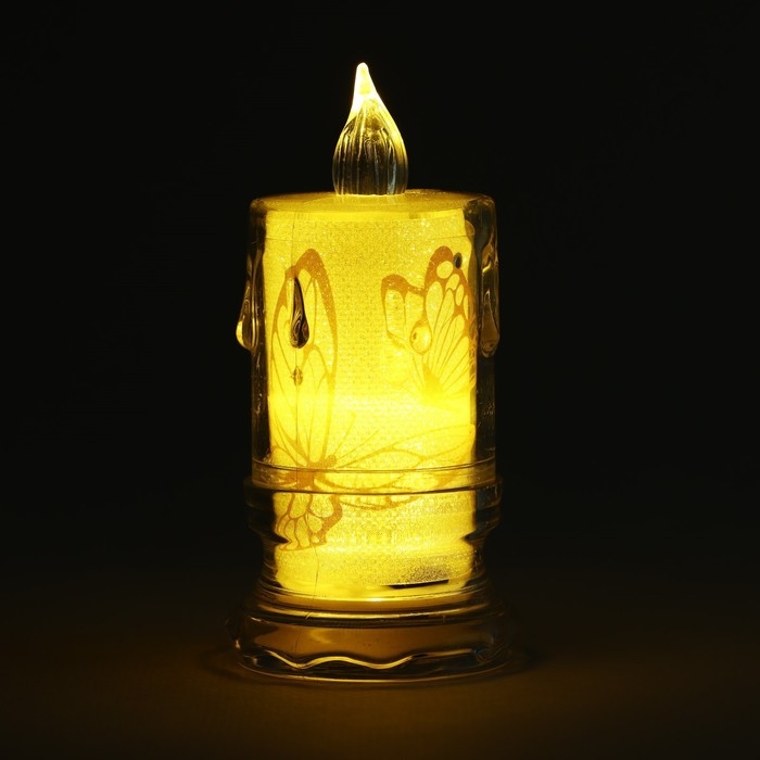 Свеча светодиодная с бабочками, мод. СВ-24 «Бабочки», 8 х 4,7 см.
