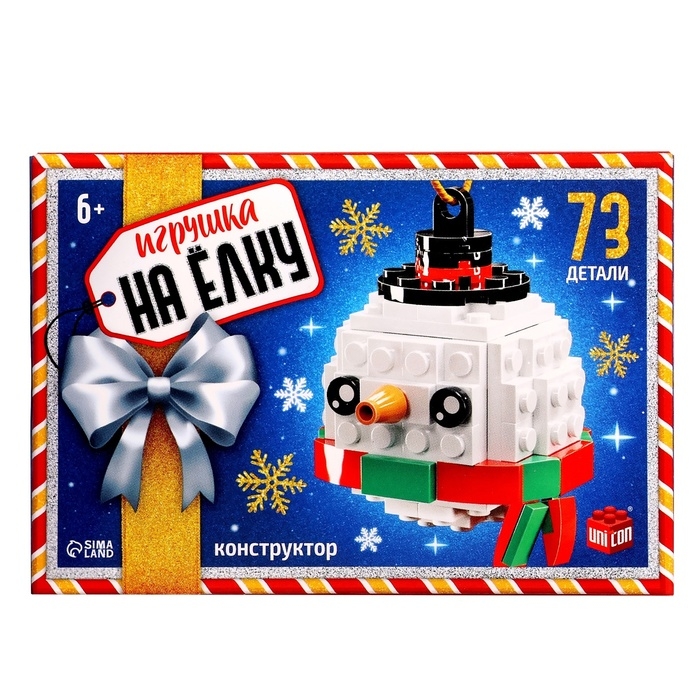 Конструктор новогодний «Игрушка на елку. Снеговичок круглый», 73 детали, 6+