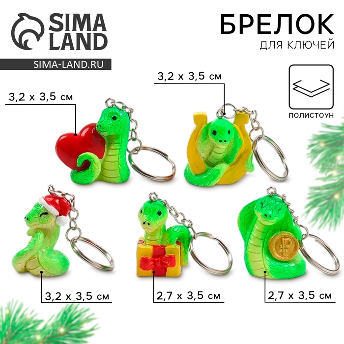 Новогодний брелок для ключей, объемный «Новый год: Змея в подарке» 2,7 х 8,5 см