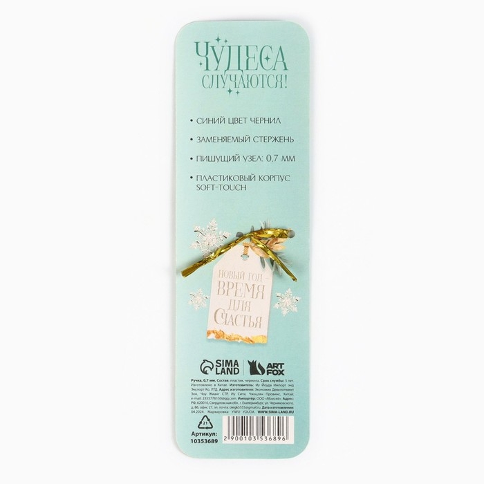 Ручка шариковая с колпачком «Новый год: С Новым годом!», пластик, синяя паста 0.7 мм